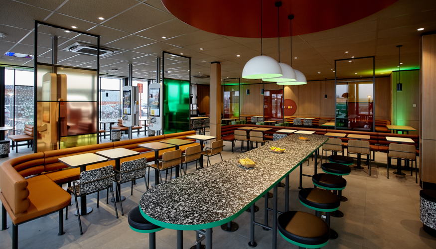 Les clients pourront démarrer leur expérience gustative en toute simplicité grâce aux trois doubles bornes de commande ou au comptoir auprès de l’un des membres d’équipe. Leur commande sera ensuite servie à table. Une plaine de jeux offrira aux enfants un espace pour s’amuser pendant que les parents commandent ou savourent leur repas en toute sérénité.