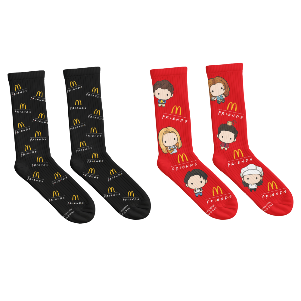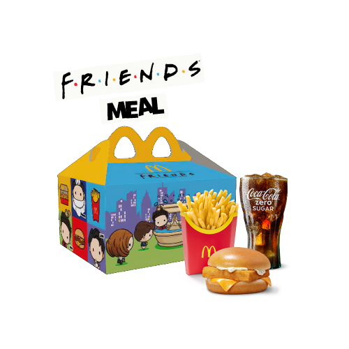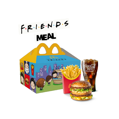 Vanaf vandaag kunnen fans de Friends Meal ontdekken: een Large McMenu® met een Big Mac®, een Filet-O-Fish® of 6 Chicken McNuggets®, vergezeld van een grote portie frietjes en een groot drankje. De Friends Meal wordt geserveerd in een box met één van de zes exclusieve figuurtjes gebaseerd op de hoofdpersonages uit de serie. Elk personage staat symbool voor een herkenbare eigenschap aan tafel: van Ross die altijd de rekening checkt tot Joey die zijn frietjes niet wil delen.