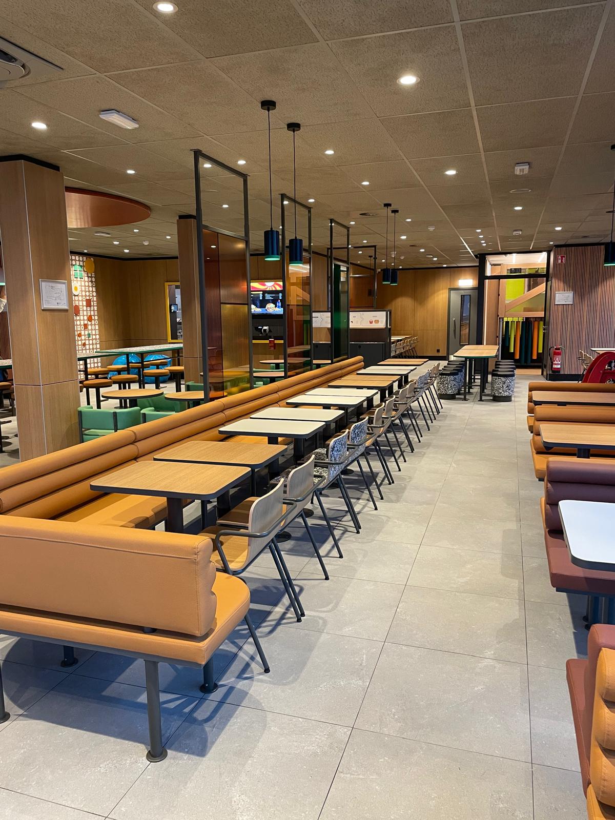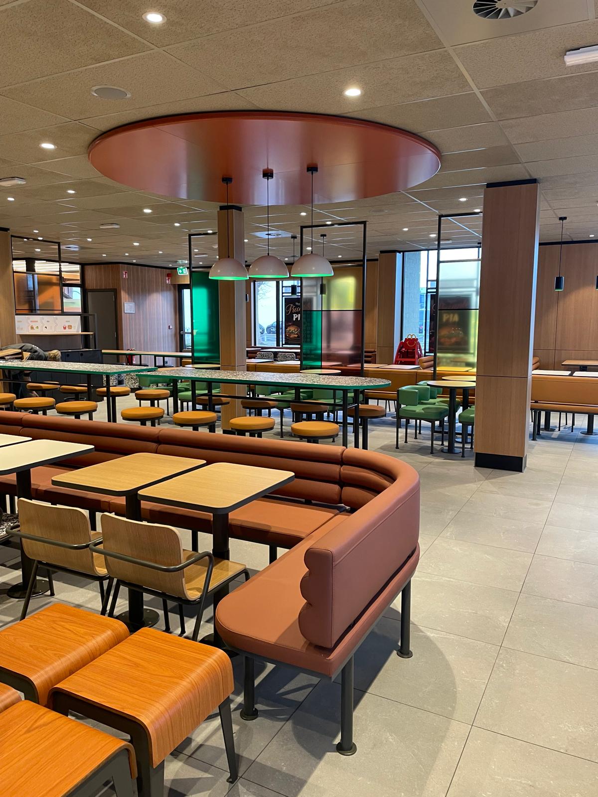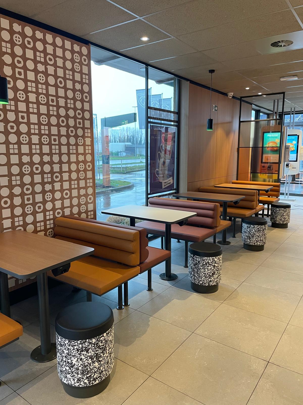De voorbije weken kreeg het restaurant een volledige make-over. Het interieur werd vernieuwd, geïnspireerd op de iconische basisingrediënten van McDonald’s en met aandacht voor eenvoud, warmte en gezelligheid. De moderne inrichting en speelse vormgeving zorgen voor een toegankelijke en ontspannen sfeer.