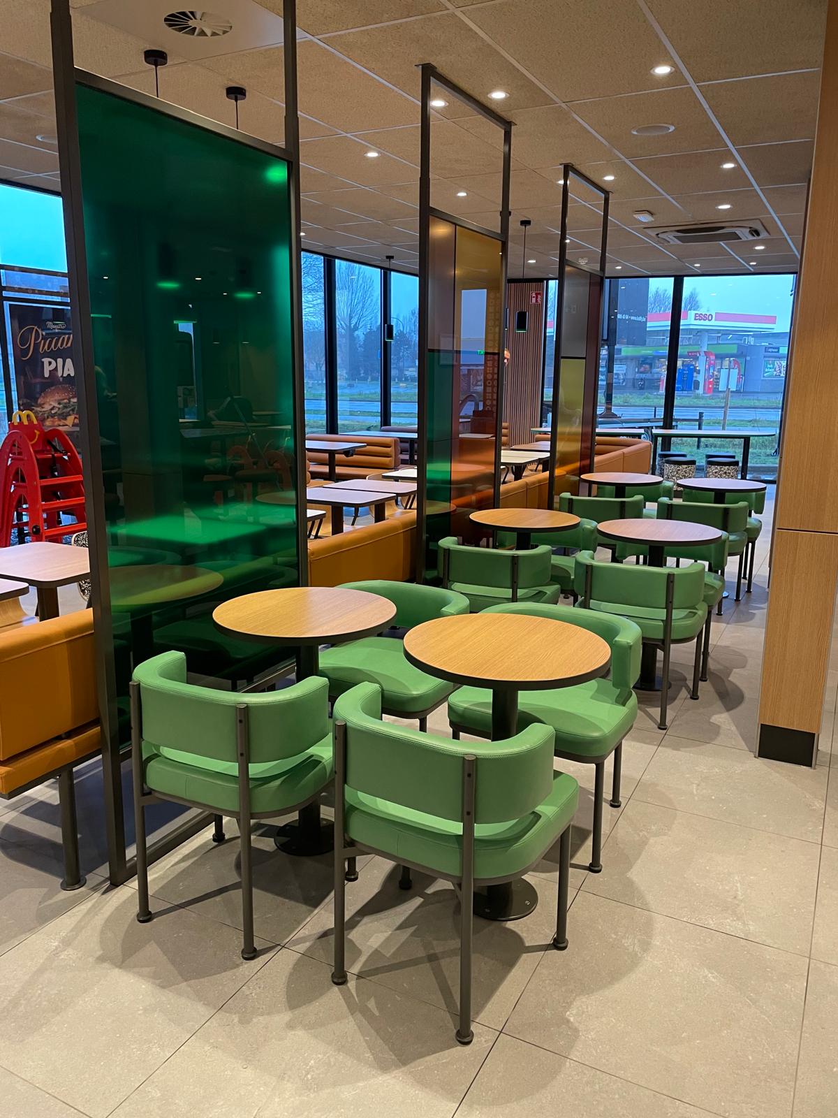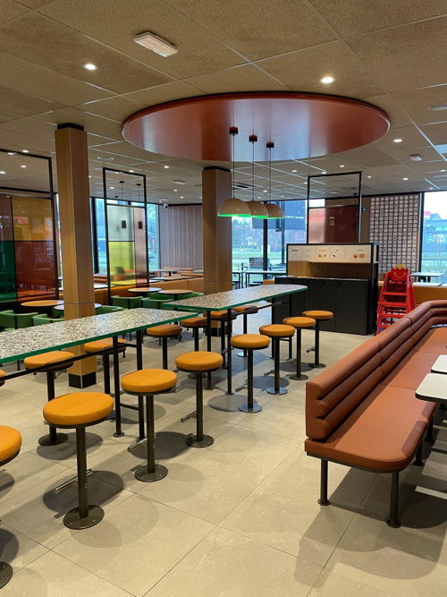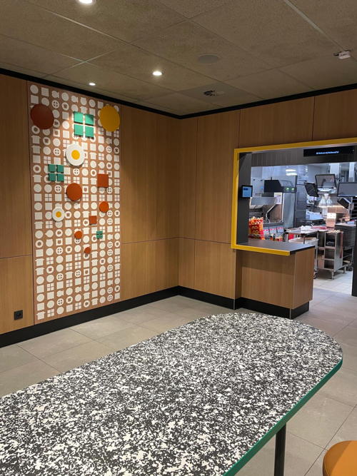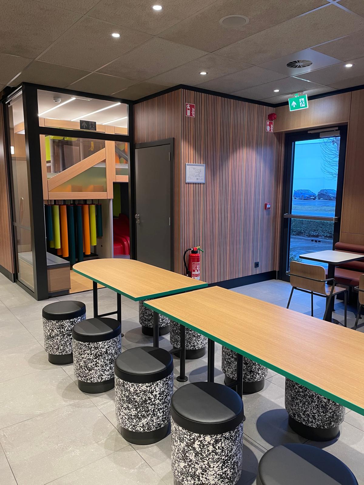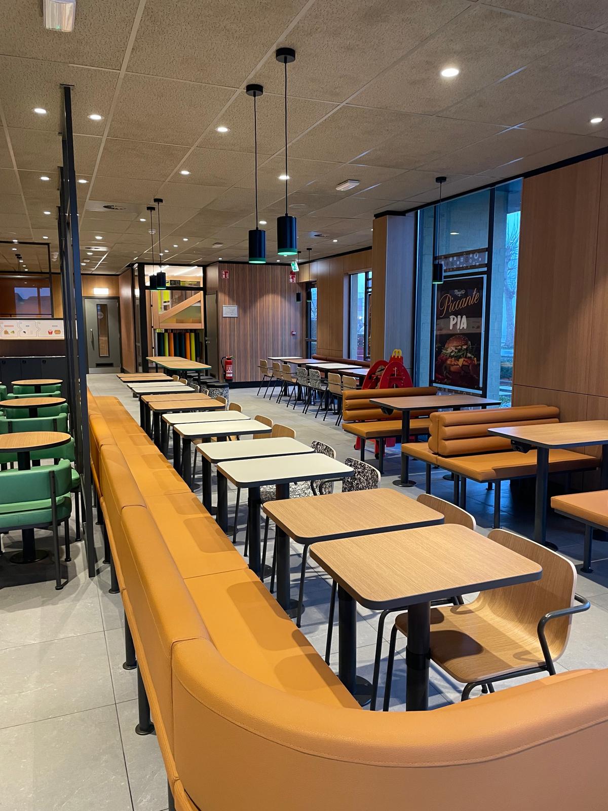 De voorbije weken kreeg het restaurant een volledige make-over. Het interieur werd vernieuwd, geïnspireerd op de iconische basisingrediënten van McDonald’s en met aandacht voor eenvoud, warmte en gezelligheid. De moderne inrichting en speelse vormgeving zorgen voor een toegankelijke en ontspannen sfeer.
