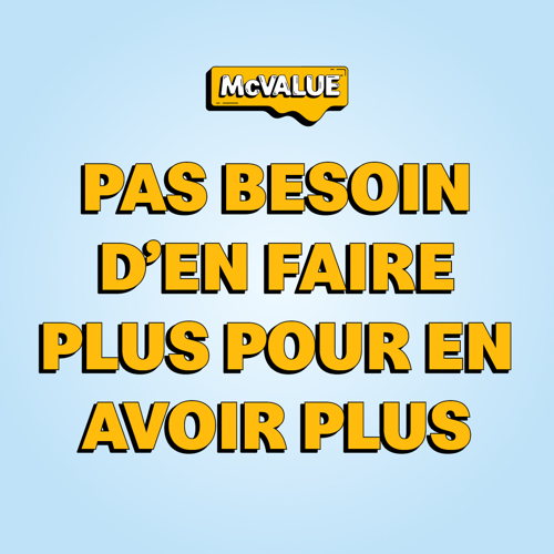 « Avec McValue, nous voulons montrer à nos clients que profiter pleinement ne coute pas nécessairement beaucoup. Avec McValue, vous en recevez plus que ce à quoi vous vous attendez, sans effort, comme avec cet extra à seulement 1 € avec votre menu. Nous voulons ainsi rendre les moments conviviaux faciles et accessibles, que ce soit en famille ou entre amis, autour d’un repas à la fois savoureux et abordable », explique Raffaele Daloiso, Managing Director de McDonald’s Belgique.
